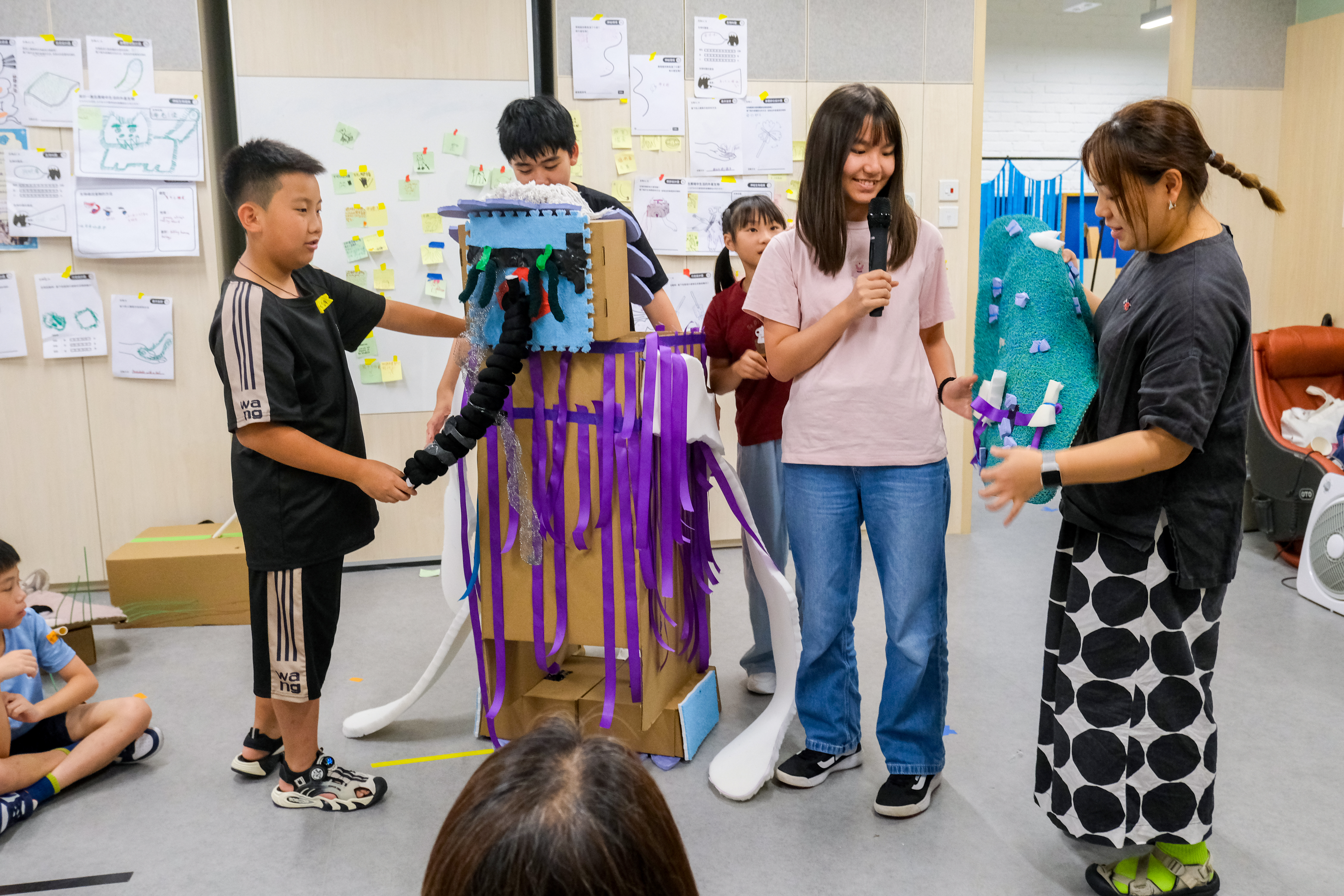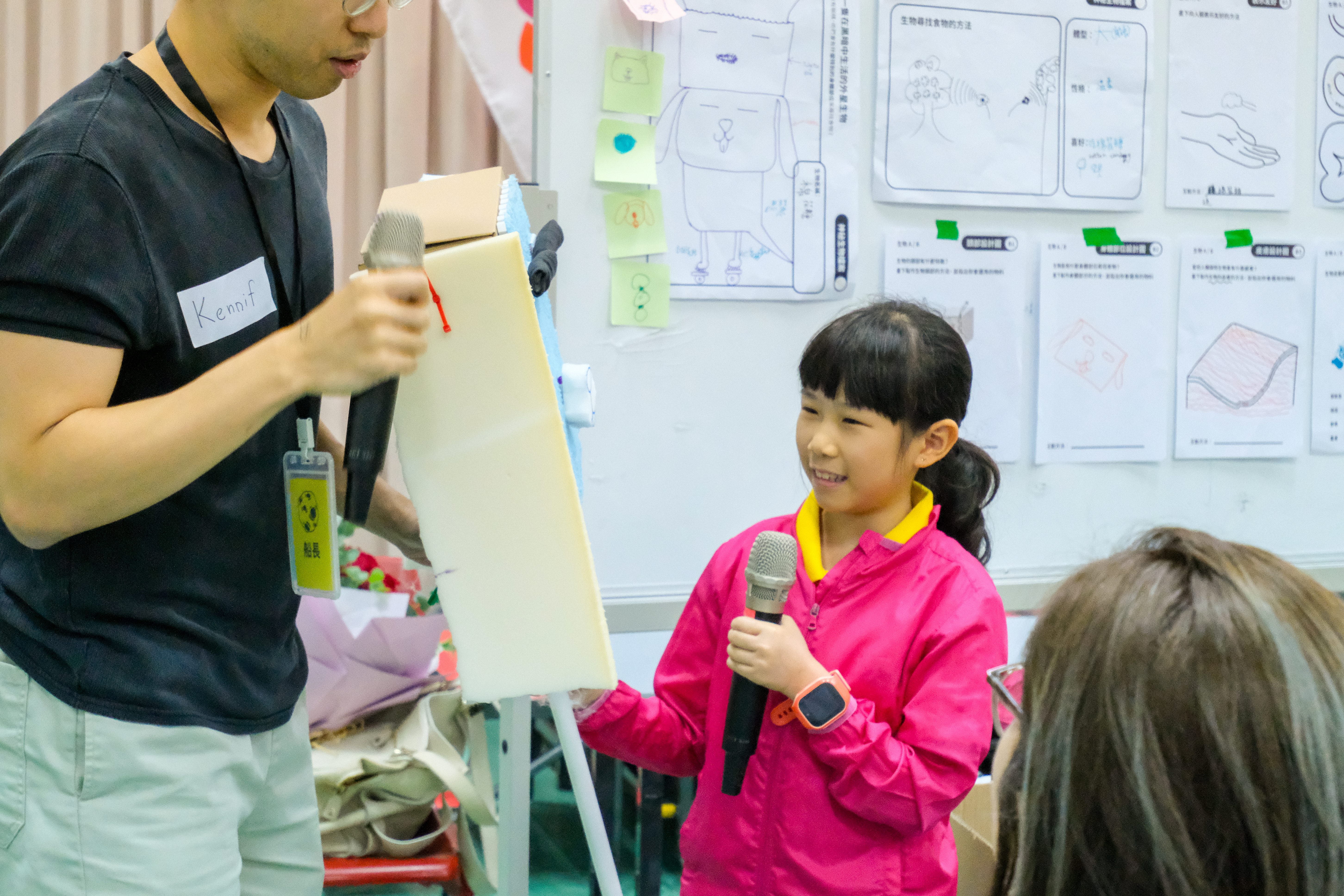 最後,小朋友帶領家長參與他們設計的體驗,並分享自己的創作過程,以深化學習成果。導師團隊也會回顧小朋友的表現,講解他們在課程中如何實踐設計思維。