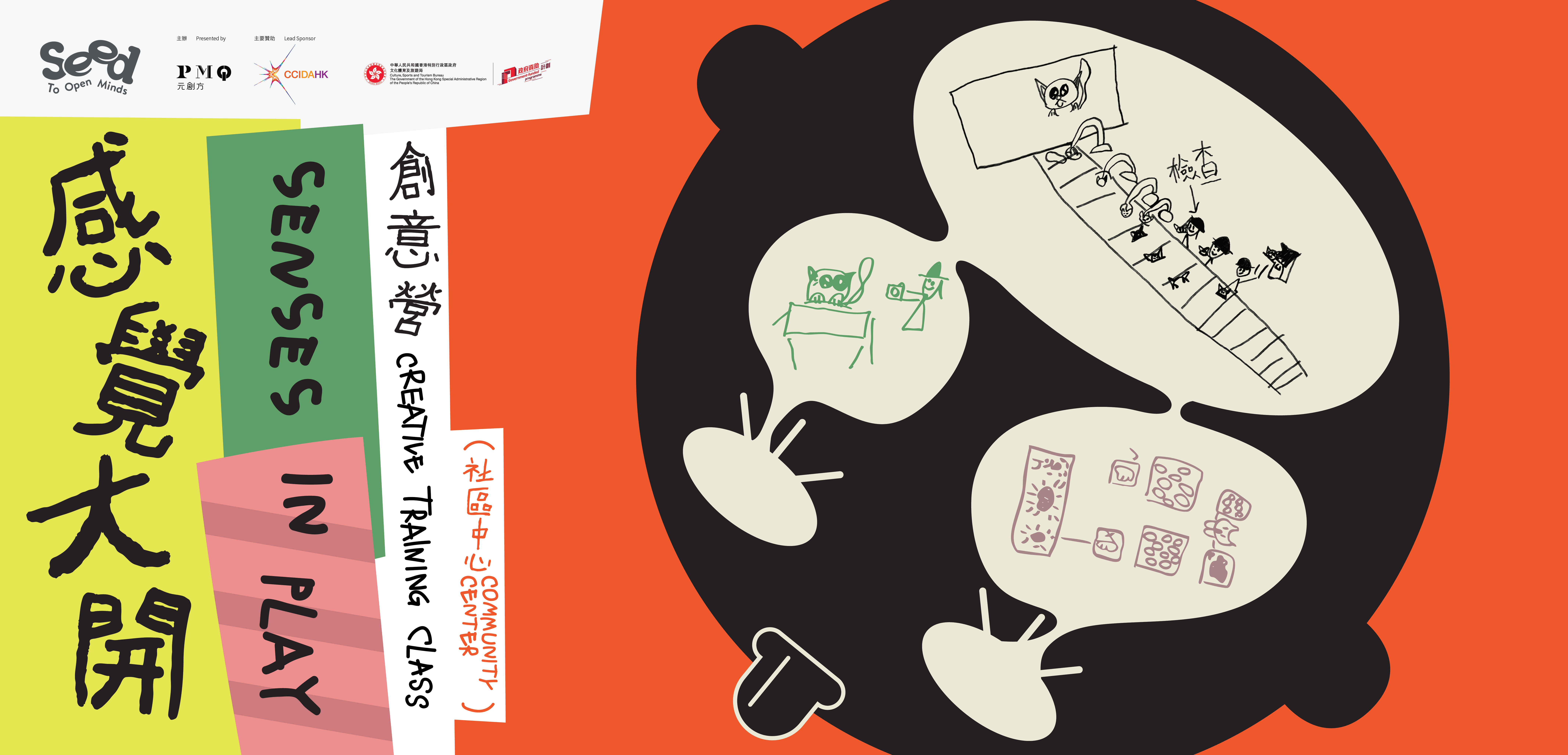 導師團隊以沉浸式學習方式,帶領小朋友參與「感官星球漫遊」,運用七感創作「神秘生物」,為家長設計一場互動劇場體驗,淺嘗體驗設計。