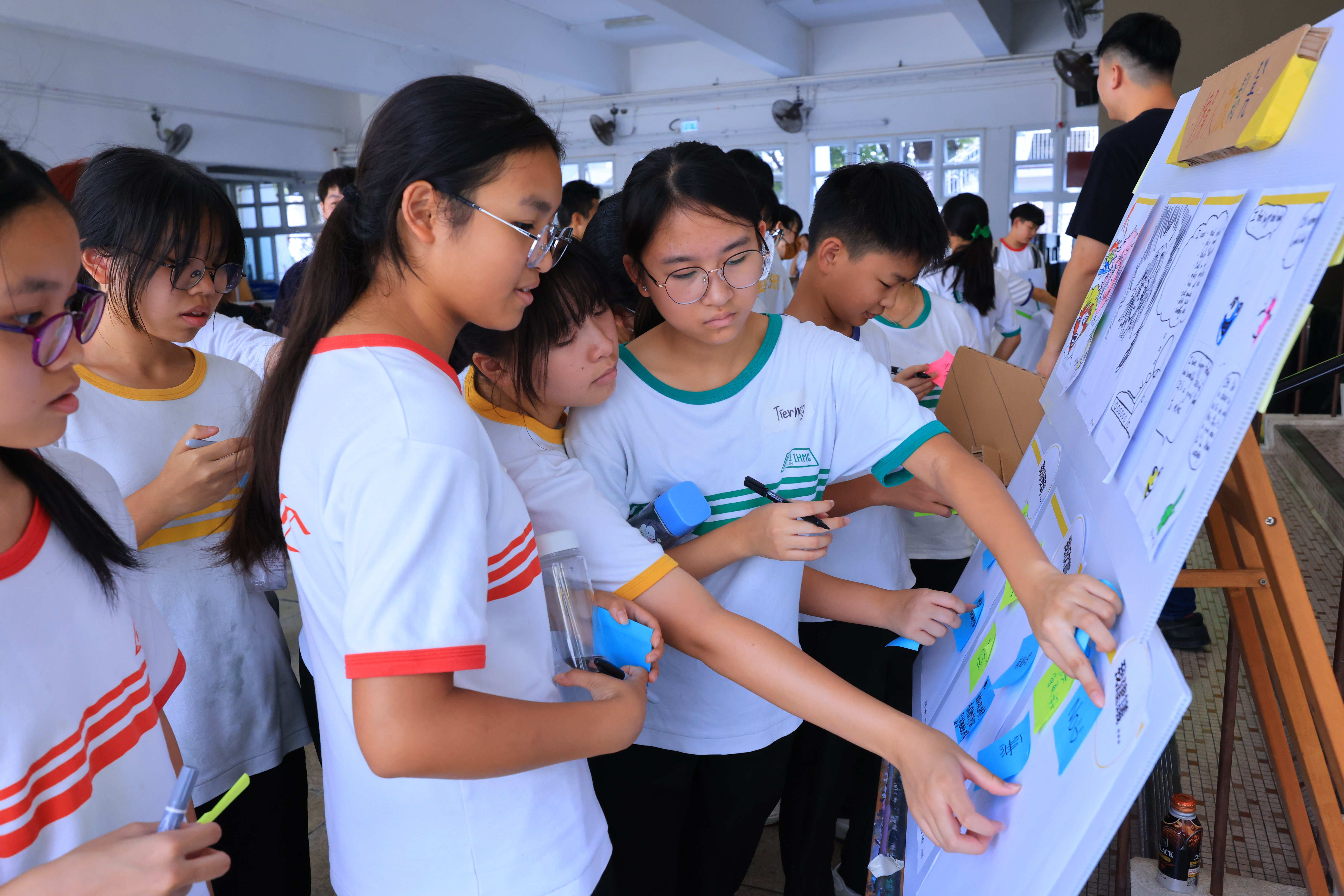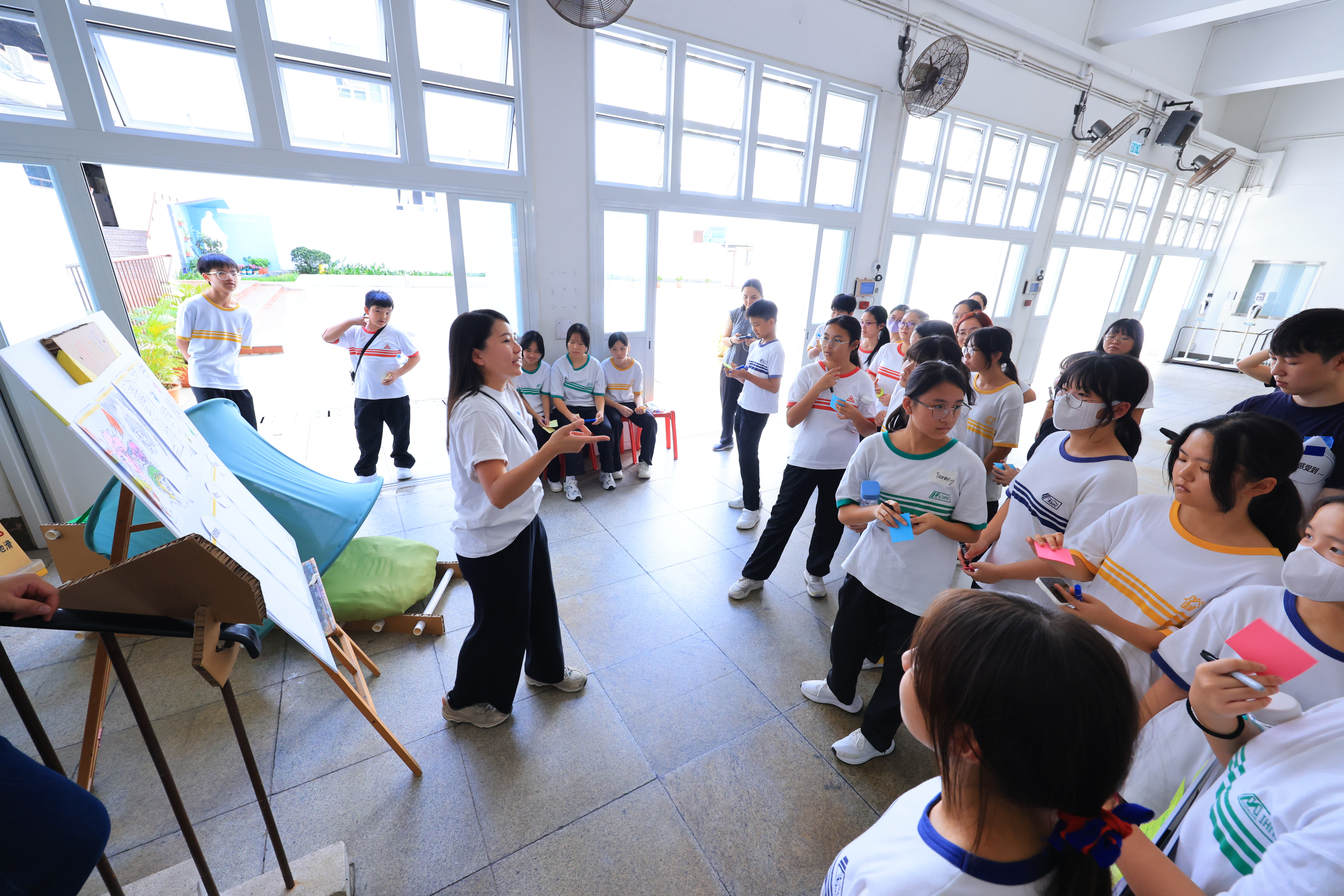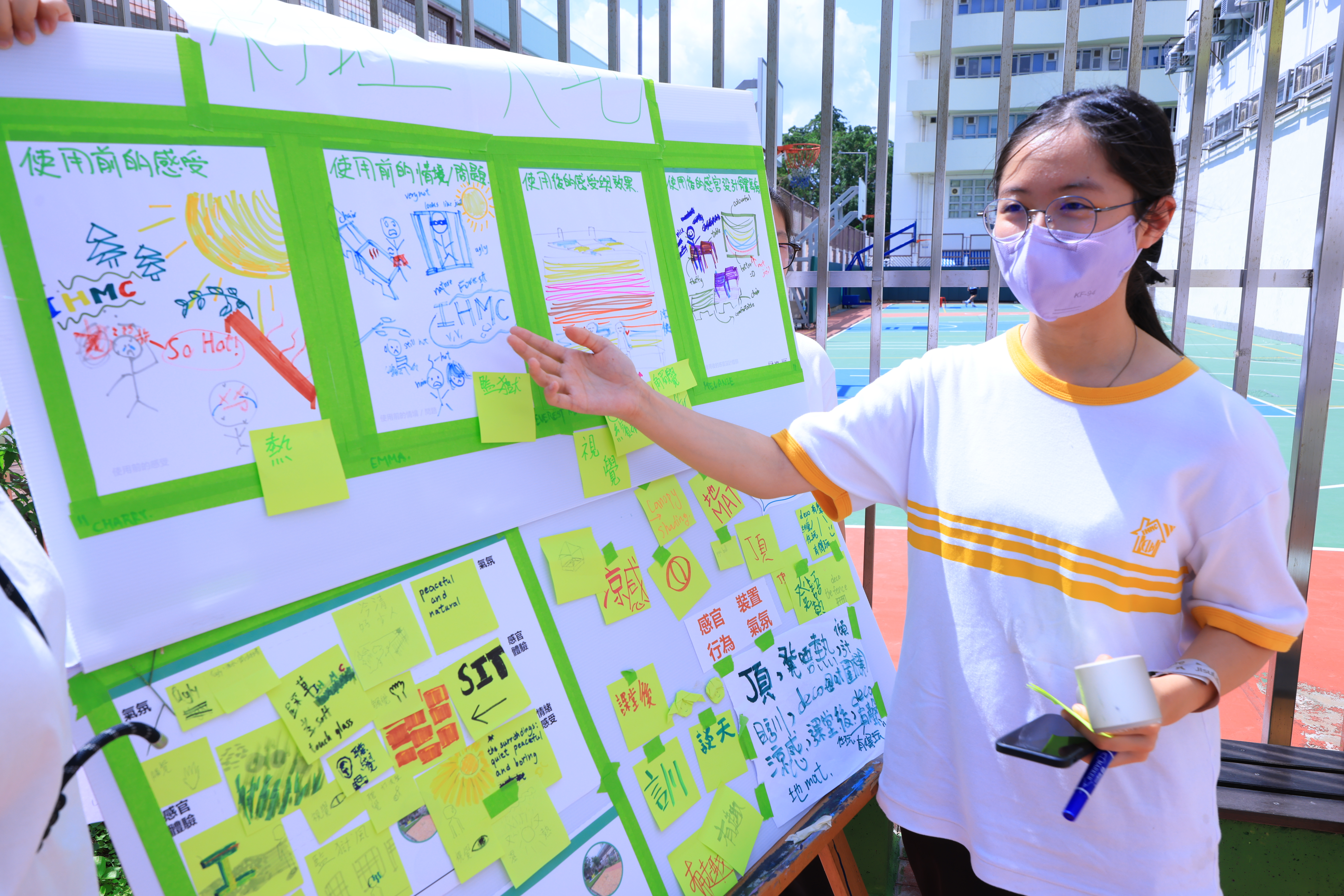 最後,學生利用結合各種材質、顏色和功能的素材,創造具有感官體驗和互動性的作品原型,並應用到相應的校園角落。在最後一堂,各小組展示創作成果及分享製作過程,深化學習成果。
